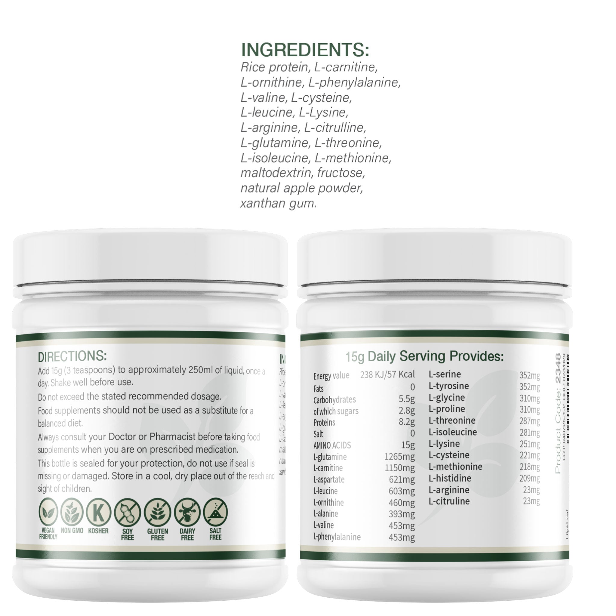 Add 15g (3 teaspoons) to approximately 250ml of liquid, once a day. Shake well before use.
