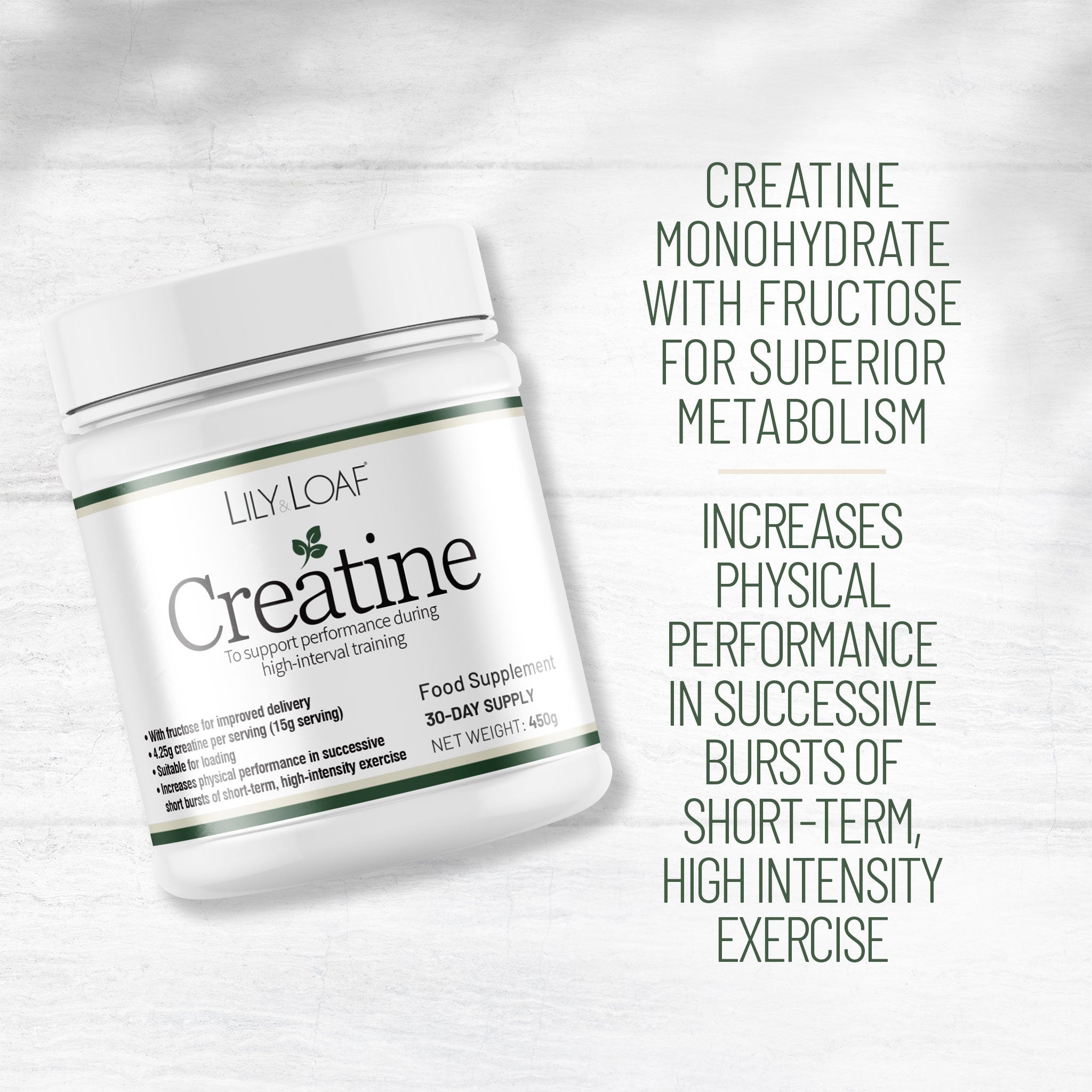 Creatine plays a critical role in energy production during high-intensity muscle contractions. The benefits of supplementation include: increased power, improved muscle strength & tone, and improved performance in short-term high-intensity exercise. It is popular with powerlifters, bodybuilders, footballers, and sprinters.