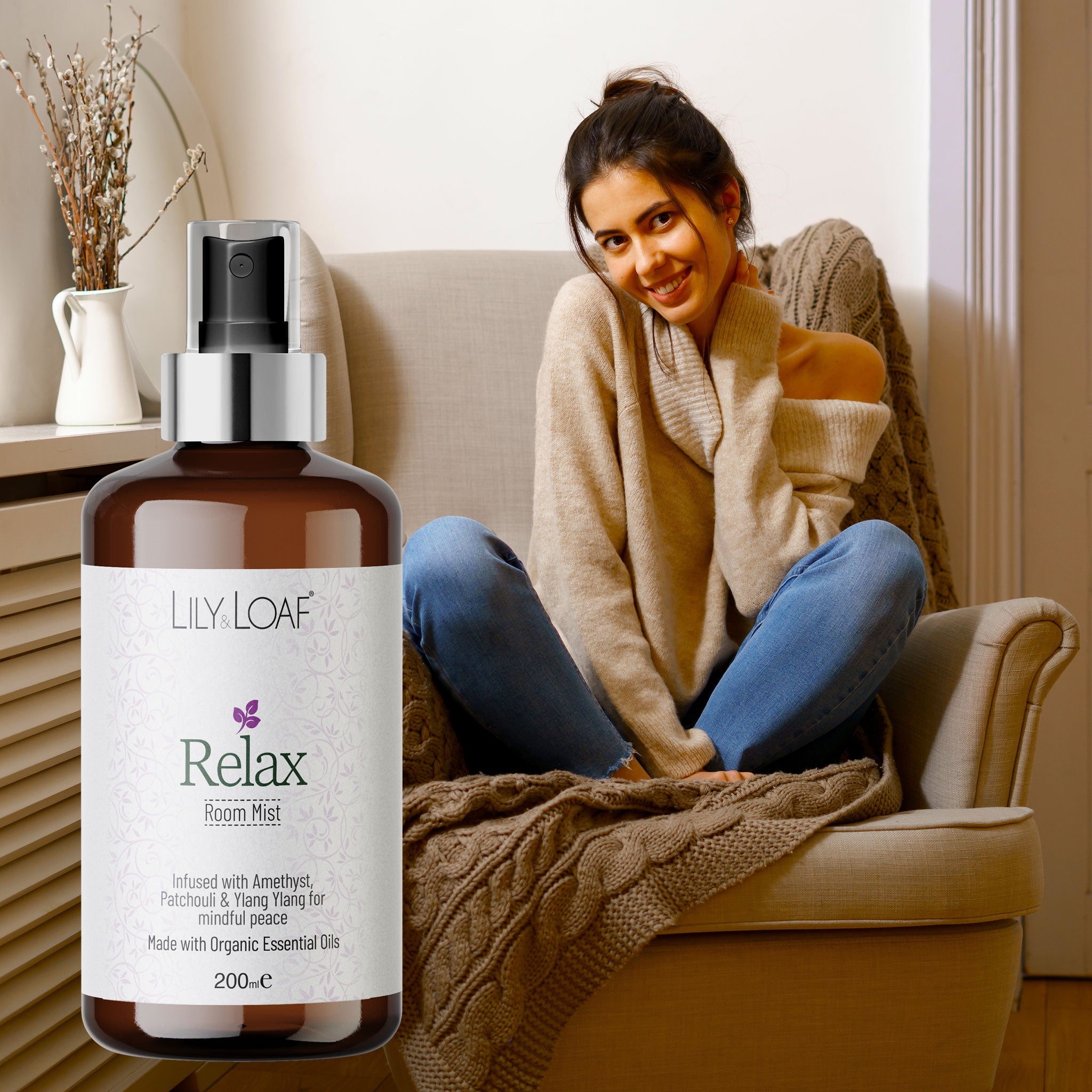 Lily & Loaf Relax Room Mist combines geranium, patchouli, ylang ylang, and grapefruit with distilled water and natural emulsifiers to support calm and comfort in any space. Ideal for bedrooms, yoga areas, or daily emotional reset.