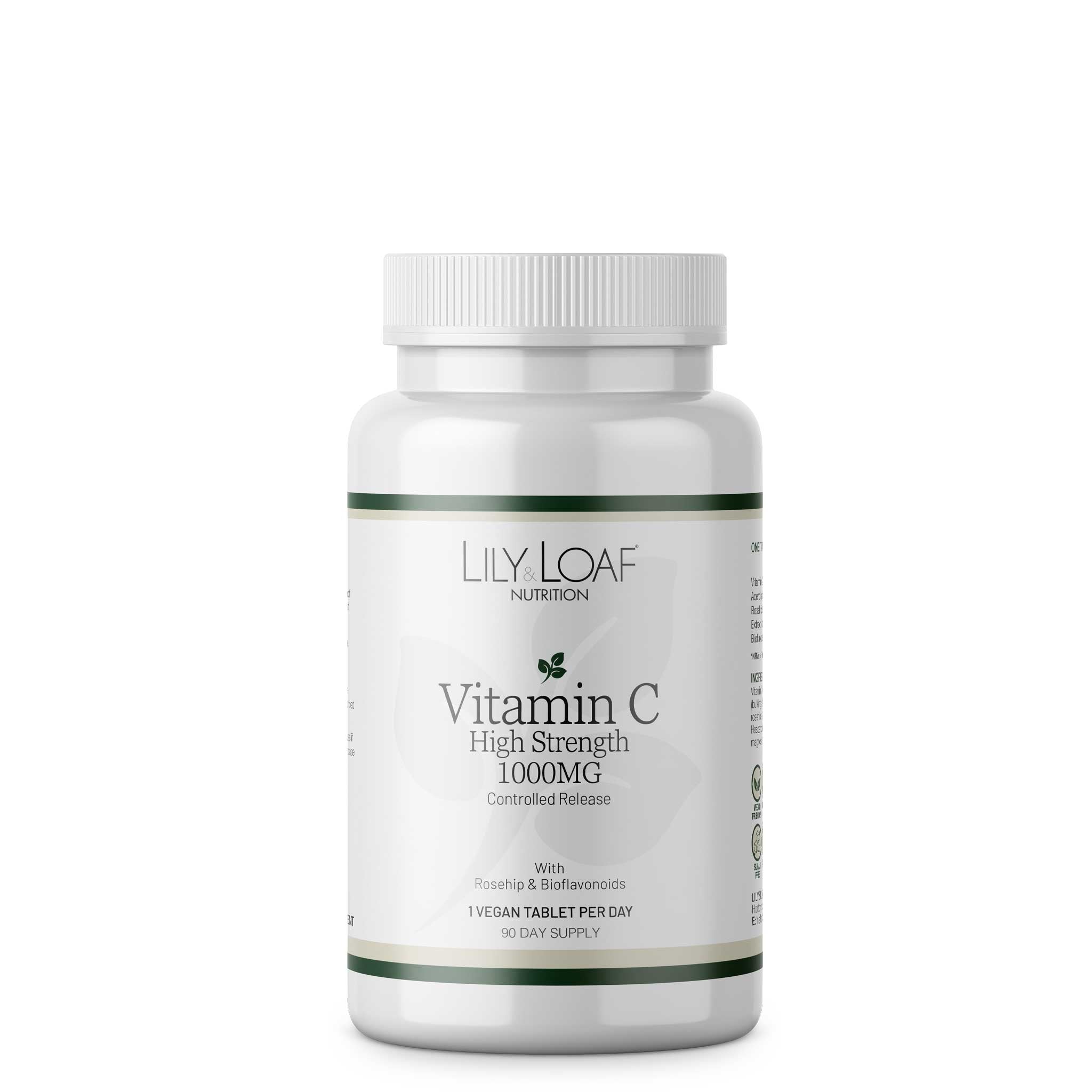 That’s where Lily & Loaf can help. Our new high-strength Vitamin C 1,000mg – controlled-release supplement can keep you topped up throughout the day. It’s been specially formulated to slowly release Vitamin C over 12-16 hours, for optimal absorption. It has also been carefully blended with other natural ingredients, including Rosehip, Acerola and Citrus Bioflavonoids, which have been specially selected to aid and enhance the effects of Vitamin C and help build the body’s resistance to airborne infections and pathogens.