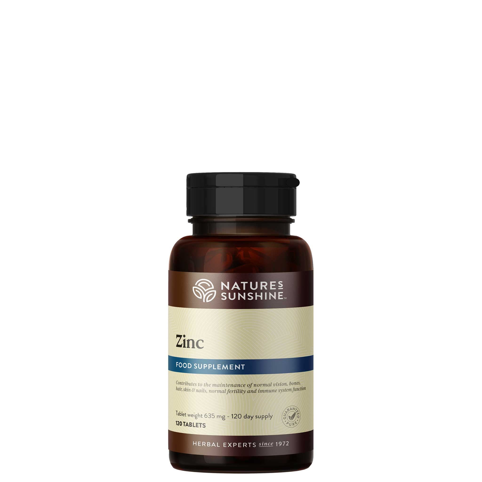 Zinc is an essential mineral that is a component of more than 300 enzymes, and supports a wide range of health benefits including, good immune function, tissue healing and repairing wounds. Zinc is also an antioxidant which contributes to the protection of cells from oxidative stress. Zinc is used for the normal maintenance of bones, hair, skin, vision, and the normal function of the immune system. It is used for protein synthesis, and it also maintains the normal metabolism of carbohydrates, fatty acids, macro nutrients and vitamin A. Zinc contributes to normal cognitive function, normal fertility, and reproduction, and is required in threshold amounts to maintain normal levels of testosterone. Pregnant and lactating women require extra zinc. Nature’s Sunshine’s Zinc is derived from zinc gluconate, and each tablet contains 15mg, which is 150% of the daily Nutrient Reference Value. For more efficient absorption, and for maximum benefit, it is combined in a rich, natural base of kelp plant, alfalfa herb and thyme herb.